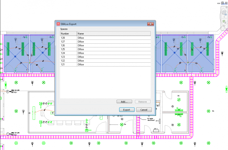 With DIALux you can create professional lighting plans for your project. MagiCAD allows you to export and import data between a MagiCAD project and DIALux.